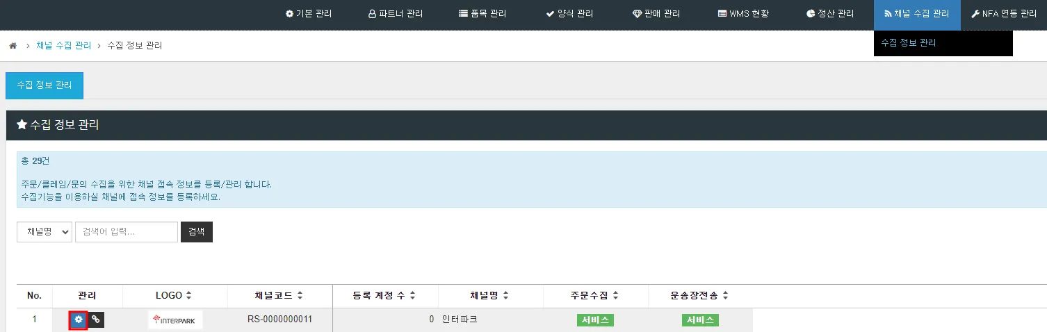 1. [채널 수집관리] > [수집 정보 관리] > ‘