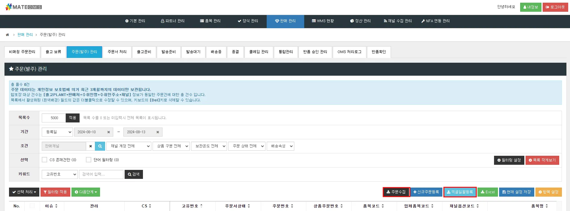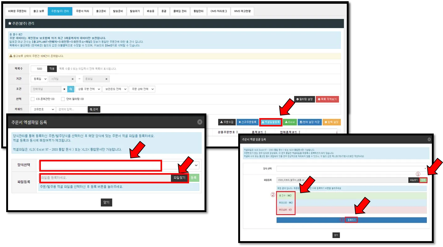 2. ‘주문수집’ 또는 ‘엑셀일괄등록’을 활용하여 신규 주문 등록